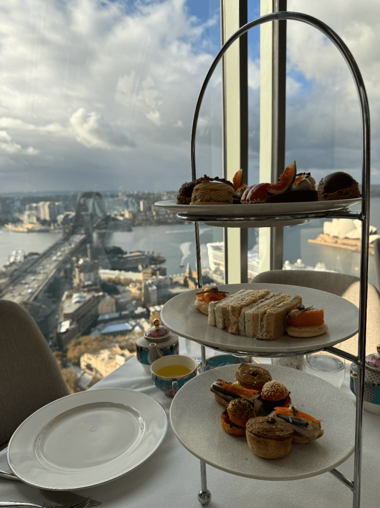 La carta de té, tan diversa como el paisaje australiano, ofrece desde la intensidad del Bush Breakfast hasta la delicadeza verde del Alpine Sencha y el exotismo especiado del Wattleseed Chai. Cada sorbo es un viaje dentro del viaje. Y si la ocasión lo pide —y siempre lo hace— una copa de champán, un vino espumoso o un cóctel ingenioso terminan de coronar la tarde con ese toque de elegancia despreocupada que solo Sídney sabe ofrecer desde lo alto.