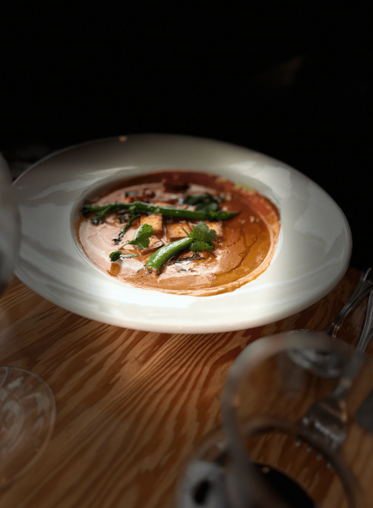 La experiencia en Christine’s es tan serena como sofisticada. El menú, cuidadosamente curado, rinde homenaje a los ingredientes locales con platos reconfortantes, elegantes y llenos de intención. Cada bocado recuerda que la cocina de montaña no tiene por qué renunciar al refinamiento, sino que puede elevarse junto al paisaje. Es una mesa donde la calidez del hogar se encuentra con la destreza del chef.