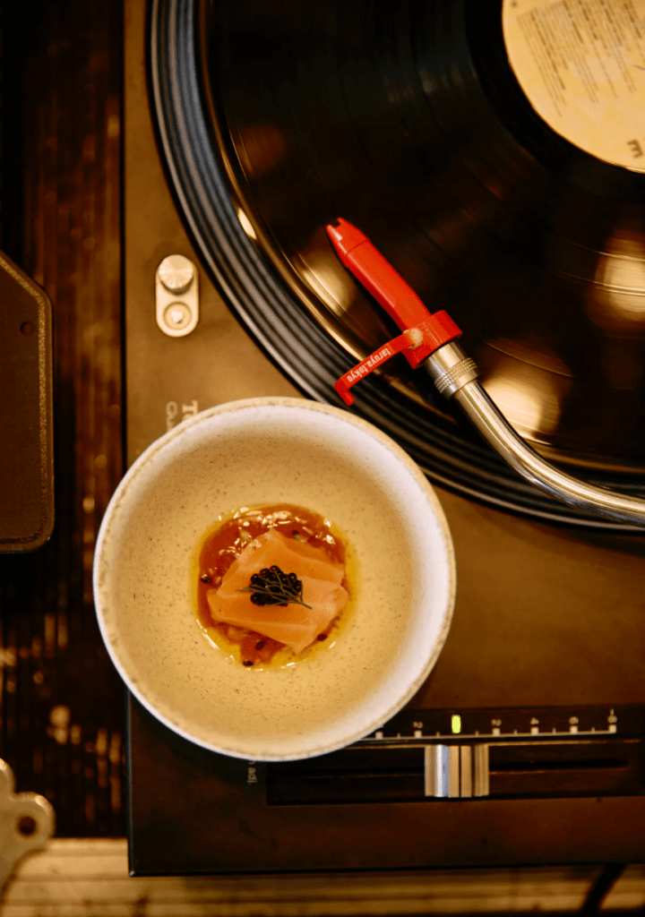 El menú, como la música, es curado con esmero, pensado para ser compartido, para ser comentado, para ser recordado. El sashimi de sandía, fresco como un cometa cruzando el cielo, despierta con su dulzura vegetal.