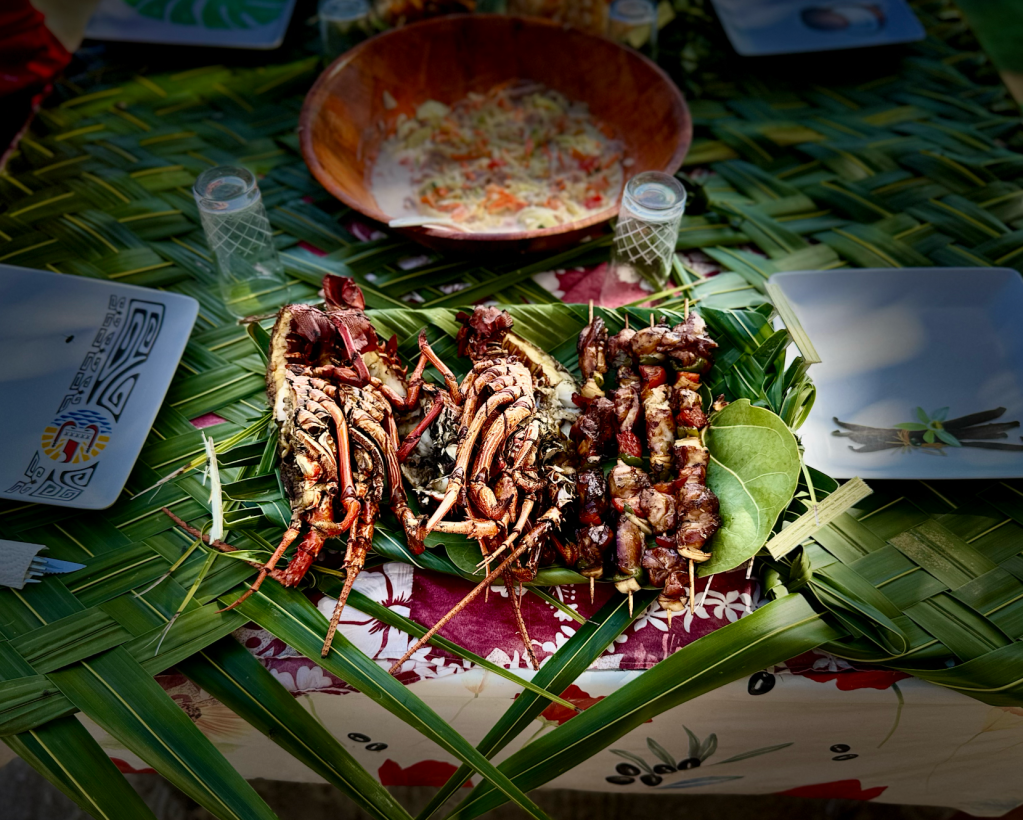 En una isla privada, nos esperaban con una mesa tendida bajo las palmas, con flores y sonrisas, con el sabor de una tierra que ama sin medida. Degusté una langosta cocinada al fuego lento, fragante y jugosa, acompañada por ese humilde manjar llamado pan de coco, que guarda en su textura toda la ternura del lugar. Cada bocado era una ofrenda, un poema que hablaba de mares antiguos y sabidurías heredadas.