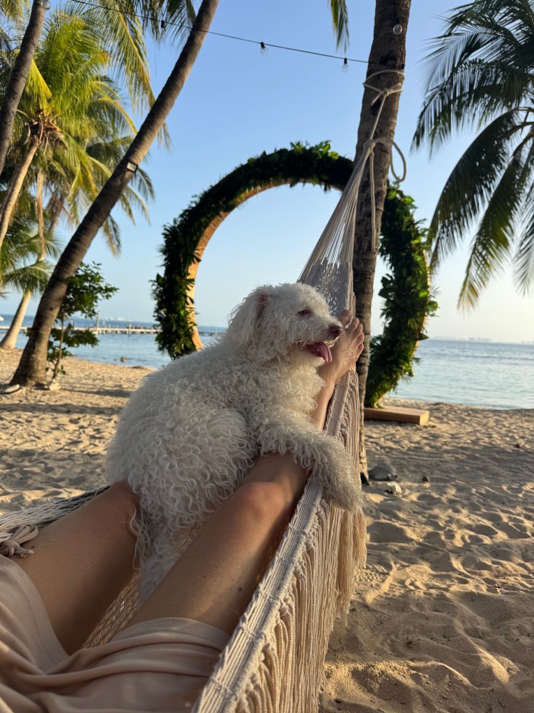 Alamare, además, entiende que el amor viaja en cuatro patas. Que no hay lujo más sincero que compartir el paraíso con quien nos mira con ojos redondos y lealtad absoluta. El hotel es pet-friendly, sí, pero más que eso: es un hogar para los que no concebimos la belleza sin la compañía de nuestras almas peludas. Llevé a Yuki, mi perrita, y verla explorar los jardines, recostarse al sol en la terraza y mover la cola al compás del viento fue como añadir una nota de ternura perfecta a una sinfonía ya sublime.