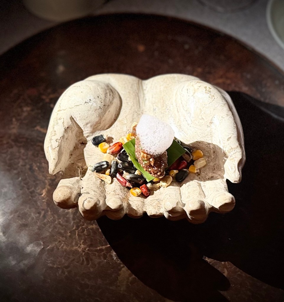 Cada platillo fue una historia contada en voz baja, con respeto por los ingredientes y una reverencia silenciosa a las raíces de la tierra. Inicié con un tamal colado de textura etérea, casi como una nube caliente sostenida por la fragancia de la hoja santa. El queso de cabra se derretía como un susurro al fondo, aportando esa nota de profundidad que acariciaba el alma más que al paladar.