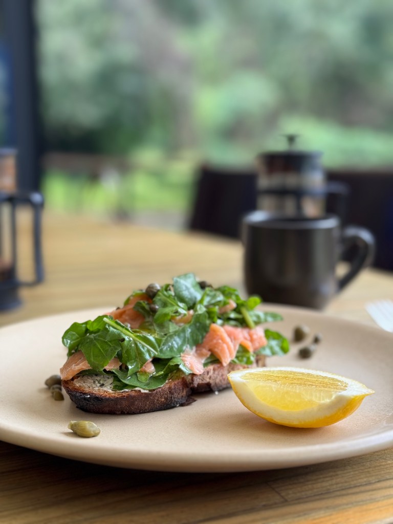 Entre los manjares de su menú nos encontramos con platillos como los chilaquiles con mole rojo fueron el primer gesto de cariño. La tortilla crujiente, el mole espeso y profundo, con ese dulzor terroso que solo logran las manos sabias. El huevo encima, perfectamente cocido, sellaba la armonía como una pincelada final. Otra joya es el toast de salmón ahumado: delicado, limpio, elegante. El pan crujía apenas, el salmón tenía la textura del silencio, y la combinación con un toque cítrico era un diálogo suave entre el campo y el agua.