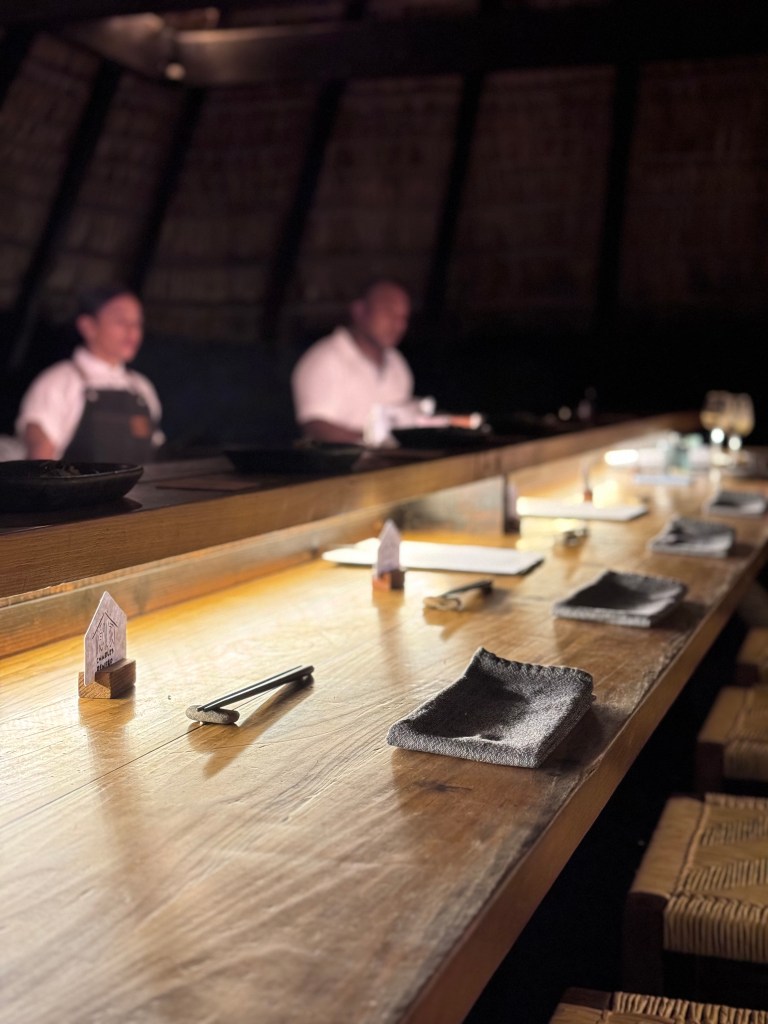 El chef Kaisuke Harada, con manos de alquimista y alma de viajero, guía esta experiencia como quien narra un cuento sin palabras. Cada platillo es una página, cada sorbo, una pausa. Hay ocho tiempos, pero no hay prisa. El fuego, el corte, el aroma: todo sucede con una atención que conmueve. Uno lo observa y entiende que está ante alguien que no cocina, sino que honra.