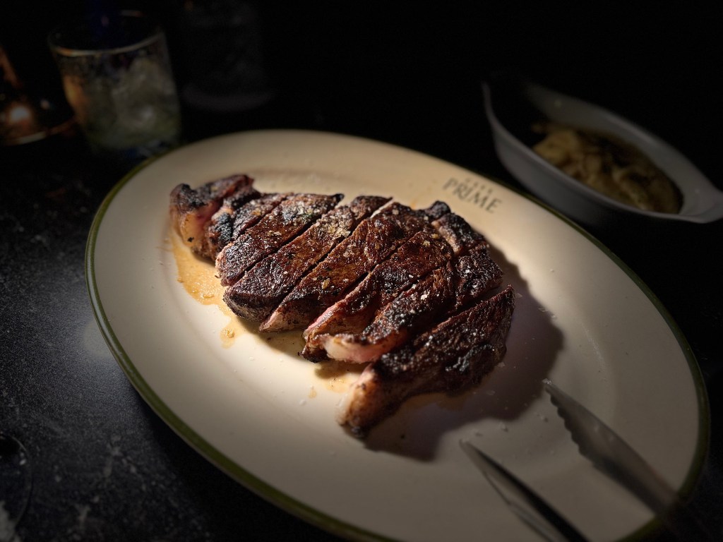 La música en vivo tejía la atmósfera con sutileza. Dos voces acariciaban el aire mientras las copas tintineaban como pequeñas constelaciones. Había algo casi ritual en la forma en que los meseros presentaban los cortes: un desfile de texturas y aromas que celebraban la nobleza de la carne. Prime rib, tomahawk, rib eye… nombres que en Casa Prime son capítulos de una historia contada con fuego y precisión.