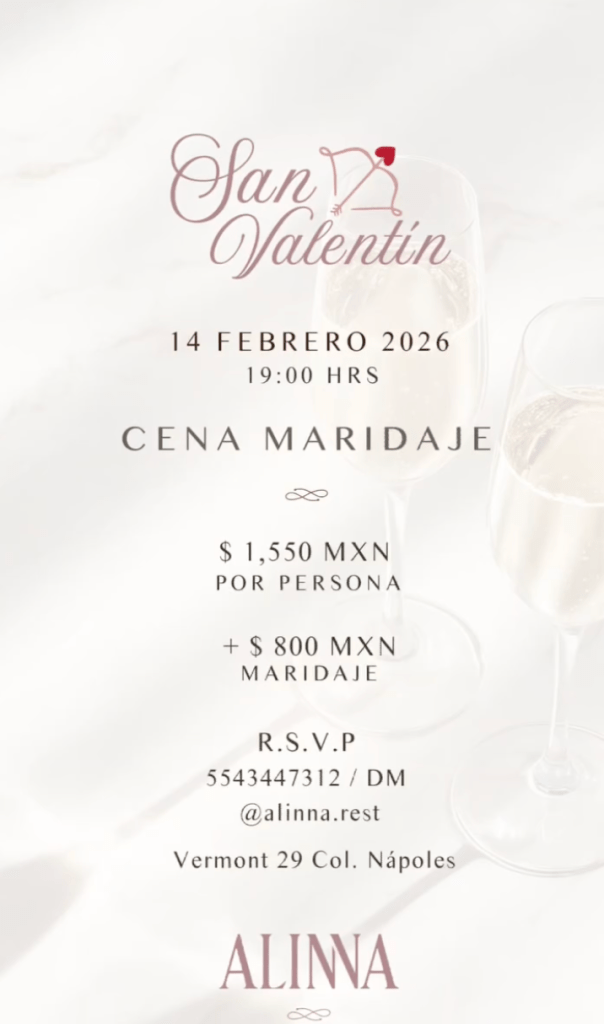 Celebrar el 14 de febrero en Alinna será elegir el amor desde la sensibilidad, desde el gesto cuidado y el placer compartido; una experiencia pensada para detener el tiempo y habitarlo juntos. En medio de la ciudad, dentro del recién inaugurado hotel The Hive en la Colonia Nápoles, Alinna se sentirá como un refugio íntimo, un espacio donde el ruido exterior se apagará y todo se concentrará en la mesa, en la conversación, en lo que se comparte.