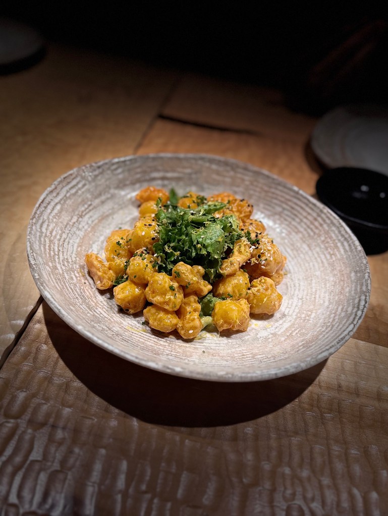 El ambiente de Ishi-ko refleja esa misma filosofía de armonía y contención. Piedras negras, iluminación cálida y una atmósfera serena crean el escenario ideal para una experiencia gastronómica pausada y consciente, donde cada detalle contribuye a una sensación de refinamiento discreto. Aquí, la comida se convierte en un acto contemplativo que permite apreciar la precisión y el cuidado detrás de cada preparación.