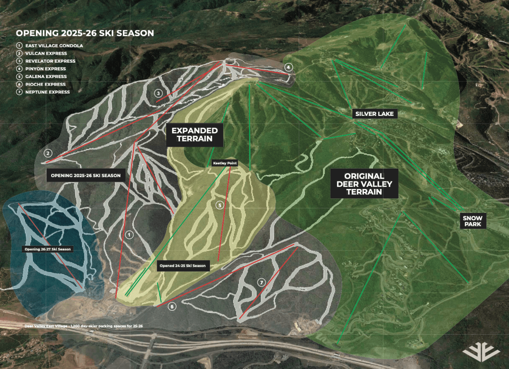 Entre ellos destaca el East Village Express, una moderna góndola para diez pasajeros que conecta el nuevo portal de Deer Valley East Village con Park Peak, abriendo un acceso completamente renovado a la montaña. Este nuevo punto de entrada, diseñado con la elegancia característica del resort, incorpora 1,200 espacios de estacionamiento para esquiadores de día y forma parte de una reconfiguración integral que también contempla la transformación del histórico Snow Park base area.
