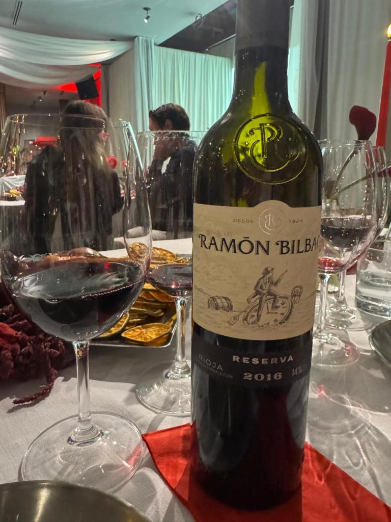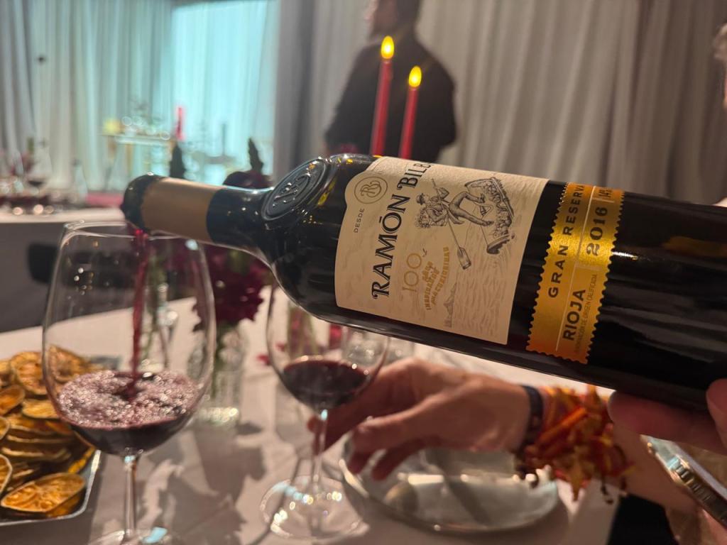 Finalmente, la experiencia culminó con un bocado tan inesperado como memorable: un bombón de morcilla con almendra y puré de manzana. Dulce, salado y profundamente reconfortante, este último gesto gastronómico encontró su compañero ideal en Ramón Bilbao Mirto, una de las etiquetas más emblemáticas de la casa, cuya elegancia y concentración cerraron la noche con una nota sofisticada.