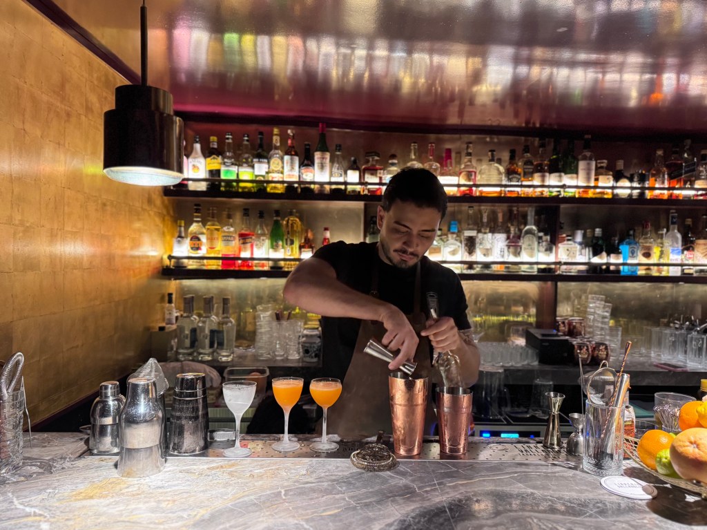 La velada comenzó con un gesto íntimo, casi literario, en Librería Valladolid, un espacio que parece existir entre dos mundos: el de las palabras y el de los espíritus. Ahí, entre luz tenue y estantes que guardan historias, los cocteles marcaron el primer ritmo de la noche. El Naked & Famous, vibrante y contemporáneo, y el Bramble, con su eco londinense, se convirtieron en una invitación a abrir los sentidos. Eran el preámbulo de una experiencia que apenas comenzaba a desplegarse.
