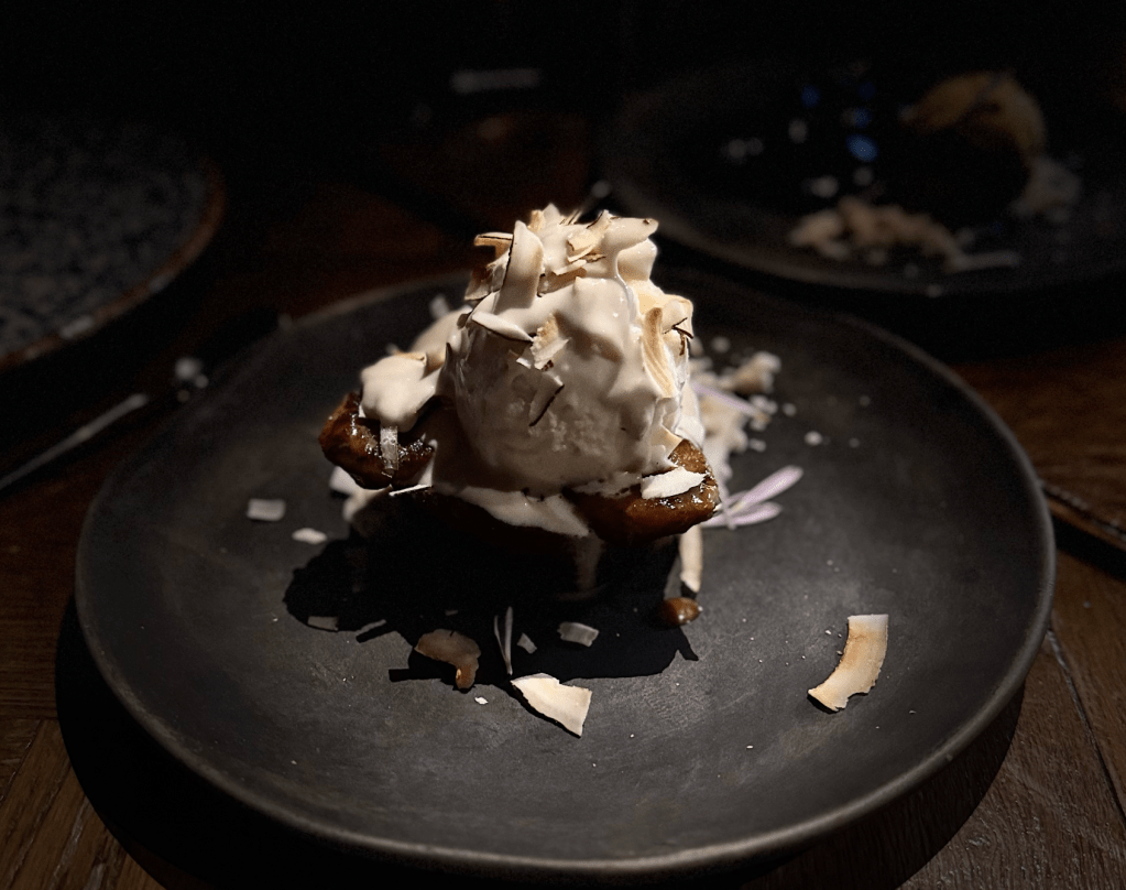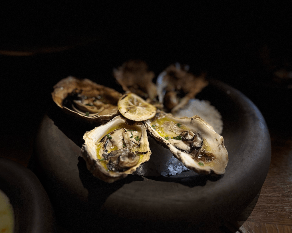 Aquí, la brasa es el centro de todo. El fuego define, moldea, transforma. Hay una intención clara de regresar a lo elemental, de cocinar desde el origen, dejando que el producto se exprese con libertad. Pescados, mariscos y cortes pasan por la parrilla con precisión. El resultado es una cocina que se siente auténtica, profundamente ligada al entorno, pero con una ejecución que revela experiencia y sensibilidad.