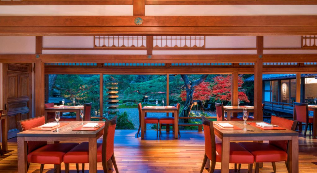 El camino hacia su restaurante japonés, Kyo-Suiran, se siente como una transición sutil entre el mundo exterior y un espacio más íntimo, más contenido. El hotel, que alguna vez fue una residencia de verano en otra época, conserva algo de esa nostalgia delicada: una sensación de retiro, de pausa, de distancia voluntaria. Todo parece estar pensado para bajar la voz, para agudizar los sentidos, para preparar el cuerpo para lo que viene.